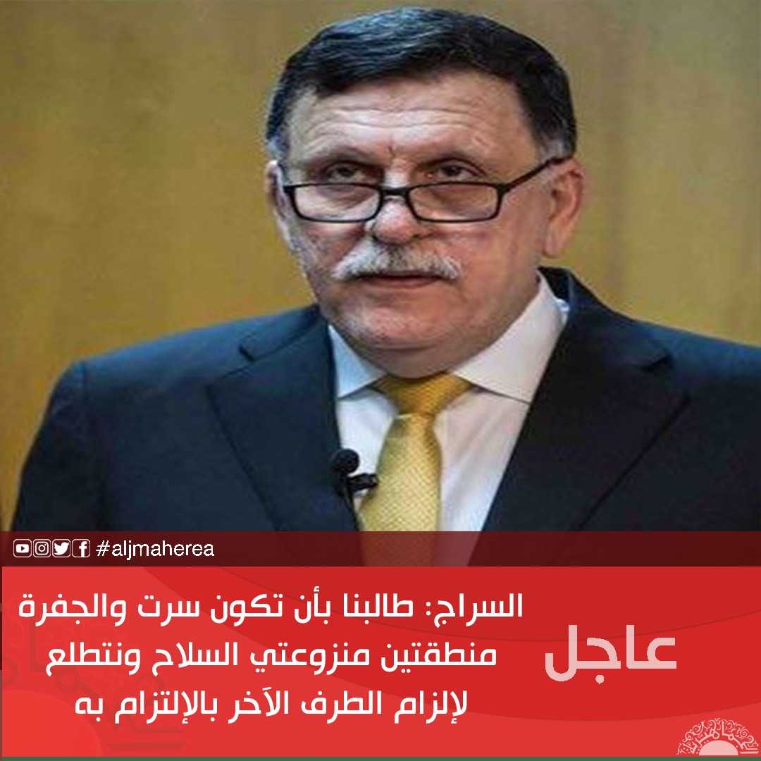 الرئيسية/محلي/عاجل/ السراج: طالبنا بأن تكون سرت والجفرة منطقتين منزوعتي السلاح ونتطلع لإلزام الطرف الآخر بالإلتزام به محلي عاجل/ السراج: طالبنا بأن تكون سرت والجفرة منطقتين منزوعتي السلاح ونتطلع لإلزام الطرف الآخر بالإلتزام به 24 سبتمبر، 2020 24 سبتمبر، 2020 فيسبوك تويتر بينتيريست واتساب تيلقرام ڤايبر مشاركة عبر البريد طباعة