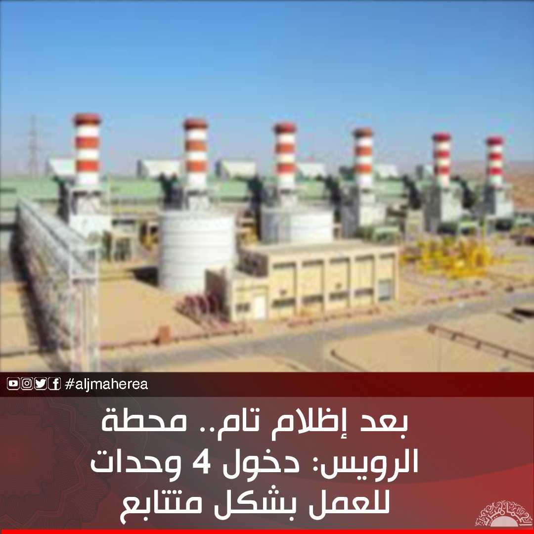 أعلنت محطة الرويس لتوليد الطاقة الكهربائية، اليوم الخميس، دخول الوحدات الثانية والثالثة والخامسة والسادسة للعمل بشكل متتابع.