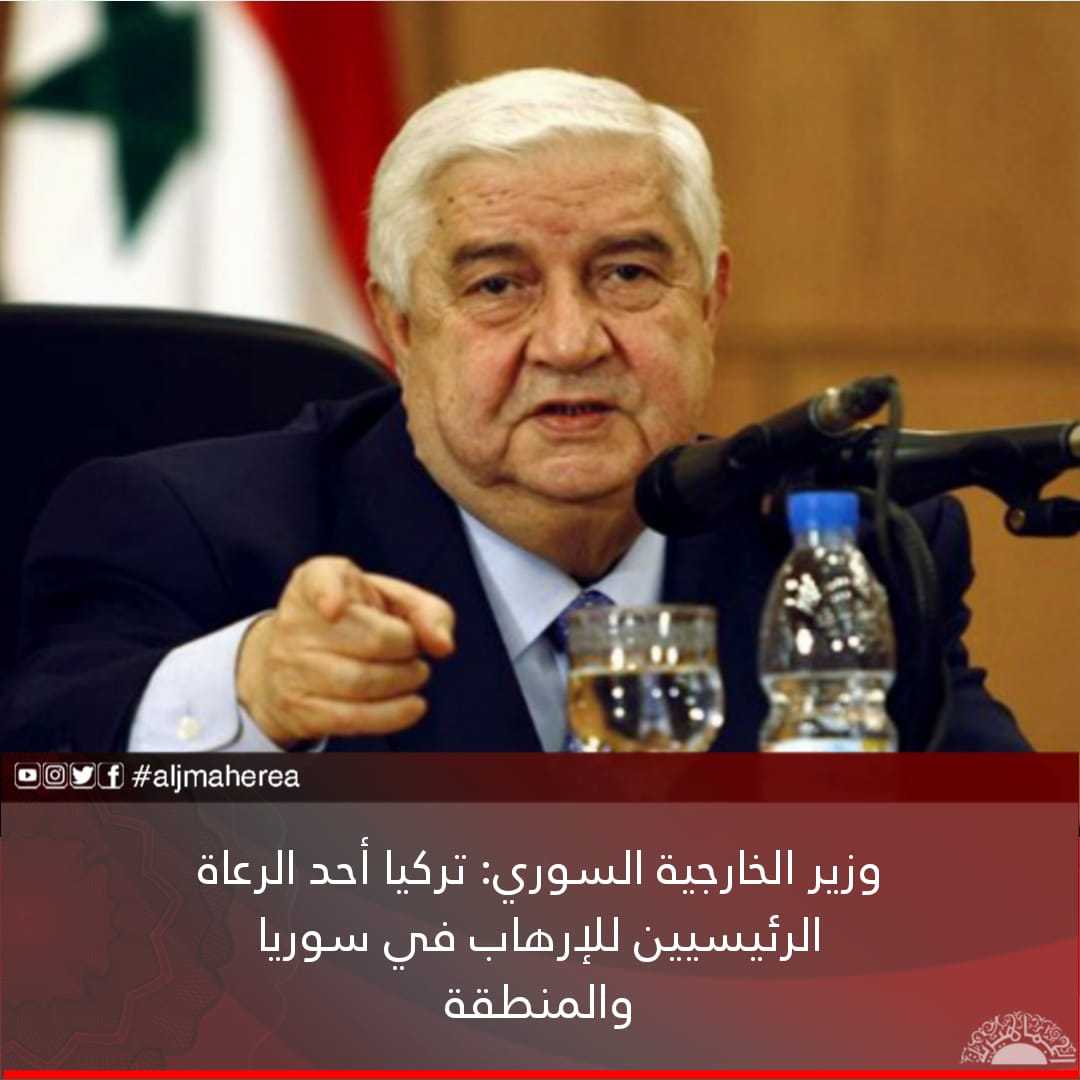 وطالب المعلم، المجتمع الدولي بوقف سياسات النظام التركي وأفعاله، التي تهدد أمن واستقرار المنطقة بأسرها.