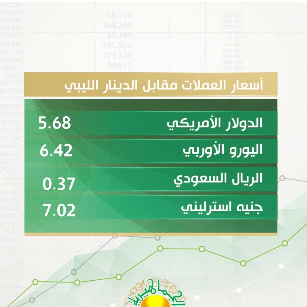 بالارقـام.. أسعار العملات الأجنبية مقابل الدينار الليبي اليوم الاحد 27/9/2020 بالسوق الموازي