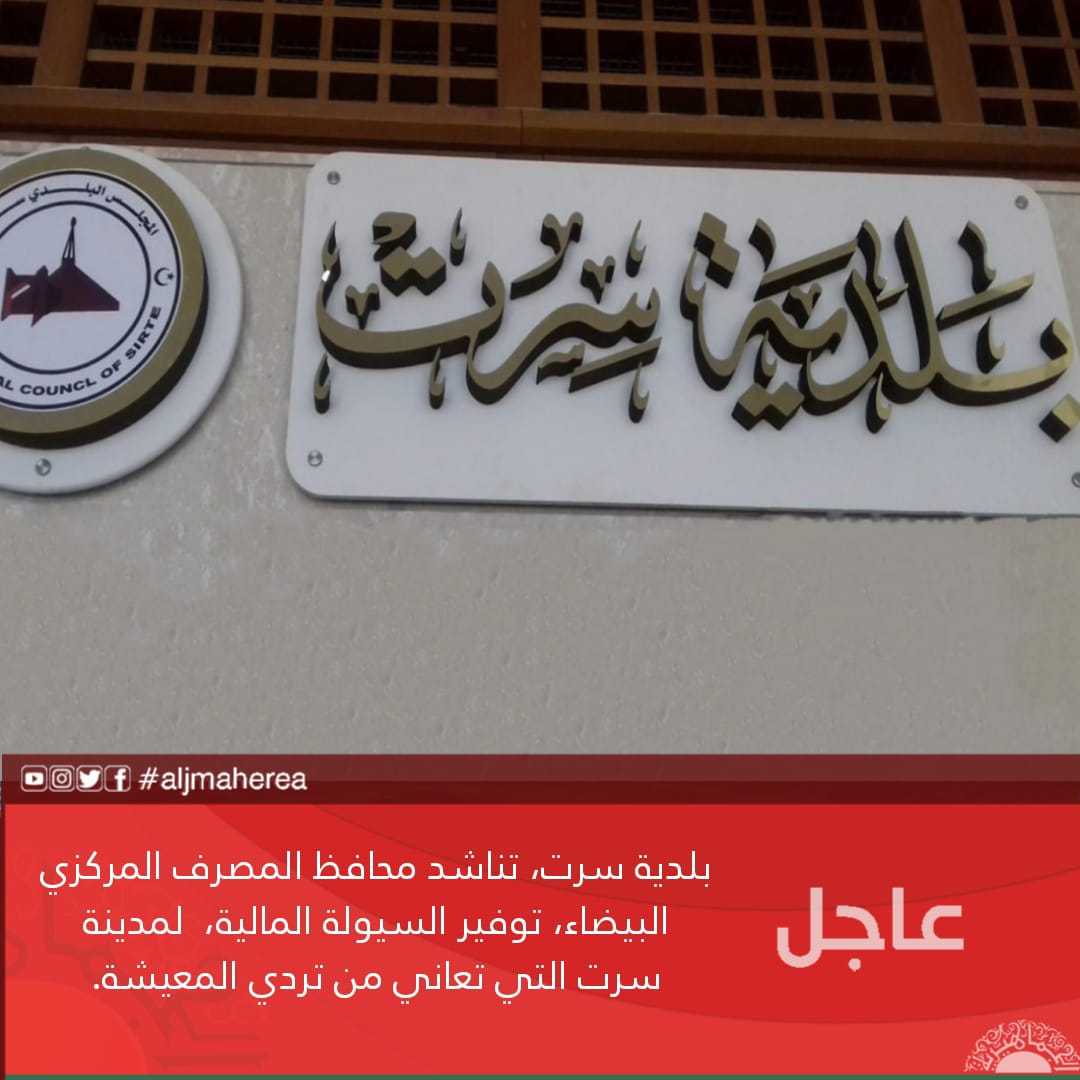 عاجل // بلدية سرت، تناشد محافظ المصرف المركزي البيضاء، توفير السيولة المالية، لمدينة سرت التي تعاني من تردي المعيشة