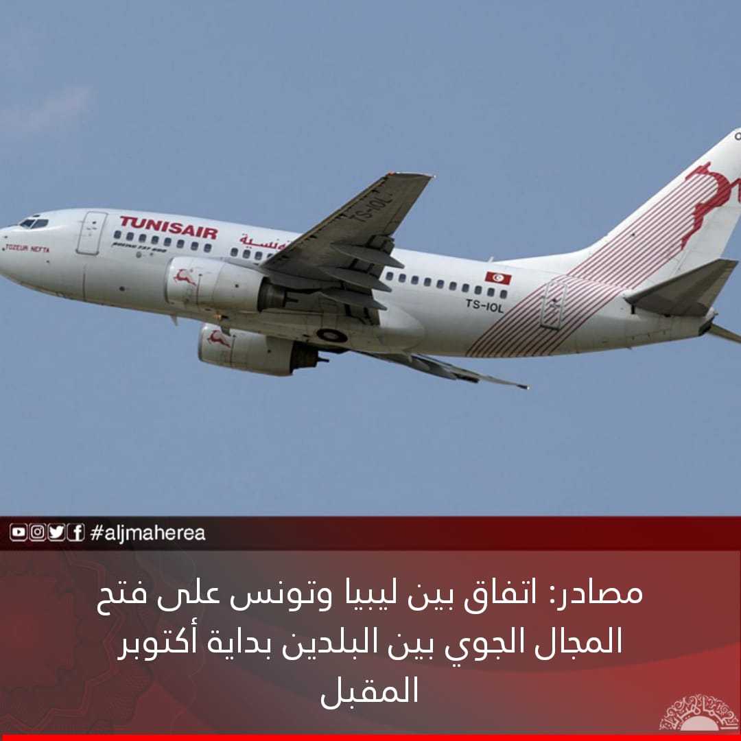 قالت مصادر مطلعة، إنه تقرر فتح المجال الجوي بين ليبيا وتونس، وذلك بعد مشاورات مع الجانب التونسي، فيما يخص فتح المجال الجوي والبري، عبر كل من اللجنتين الليبية والتونسية، بخصوص فتح المعابر الحدودية، وإستئناف الرحلات الجوية بين البلدين.