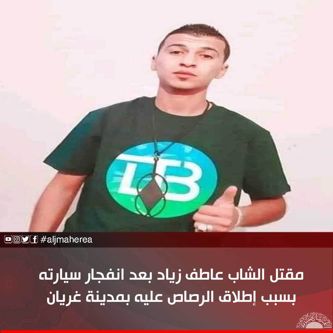 مقتل الشاب عاطف زياد بعد انفجار سيارته بسبب إطلاق الرصاص عليه بمدينة غريان