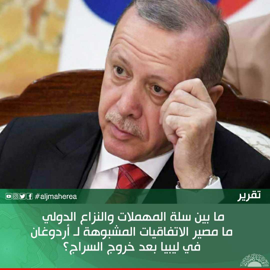 “ما بين سلة المهملات والنزاع الدولي”.. ما مصير الاتفاقيات المشبوهة لـ أردوغان في ليبيا بعد خروج السراج؟