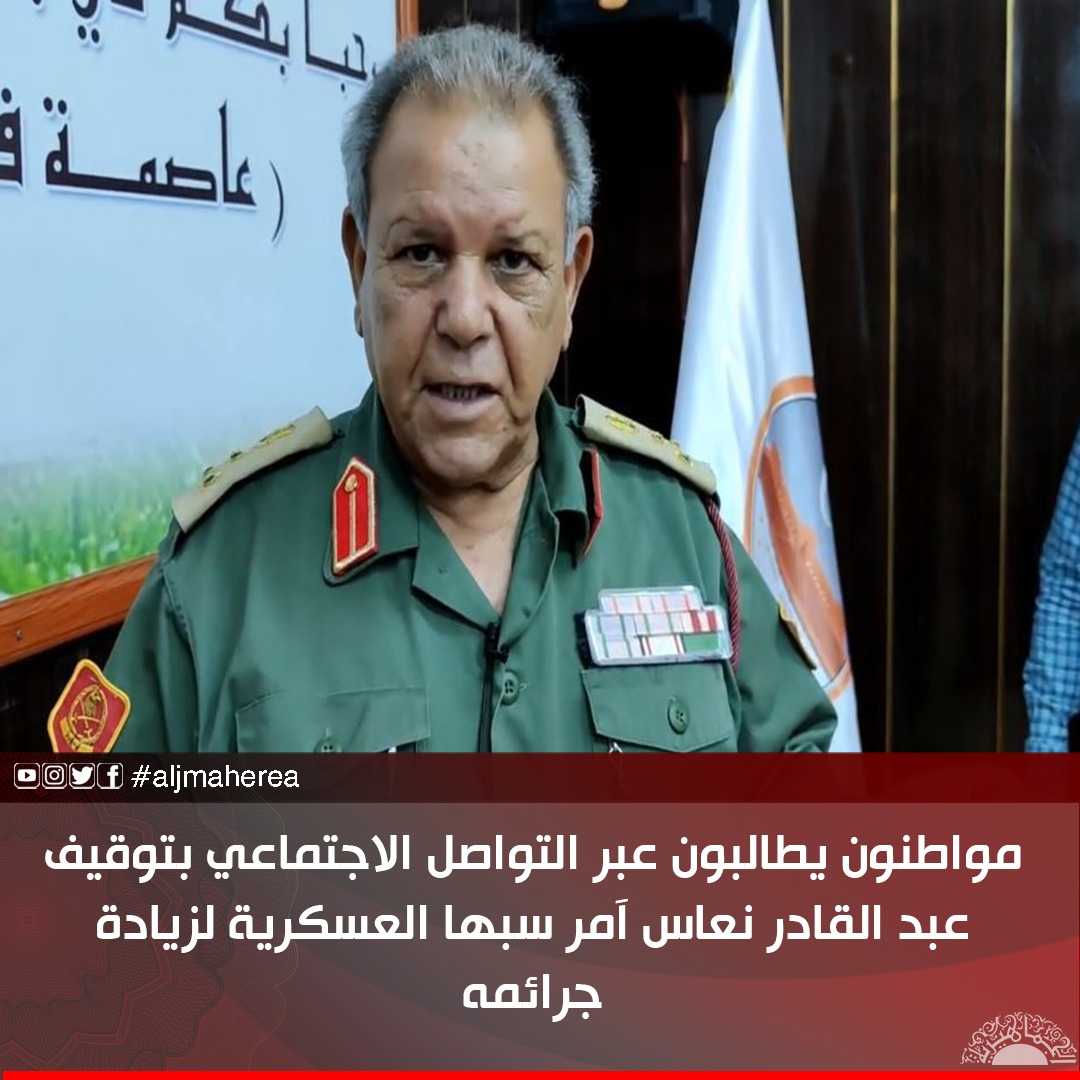 طالب مواطنون، عبر موقع التواصل الاجتماعي، بتوقيف عبد القادر نعاس، آمر منطقة سبها العسكرية، والذي يمعن، في تعذيب وحصار وزيادة معاناة أهل الجنوب، لأجل إرضاء أسياده في الرجمة.