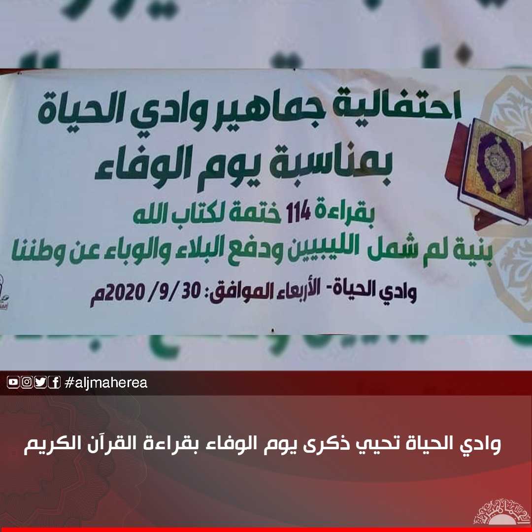 وادي الحياة تحيي ذكرى يوم الوفاء بقراءة القرآن الكريم