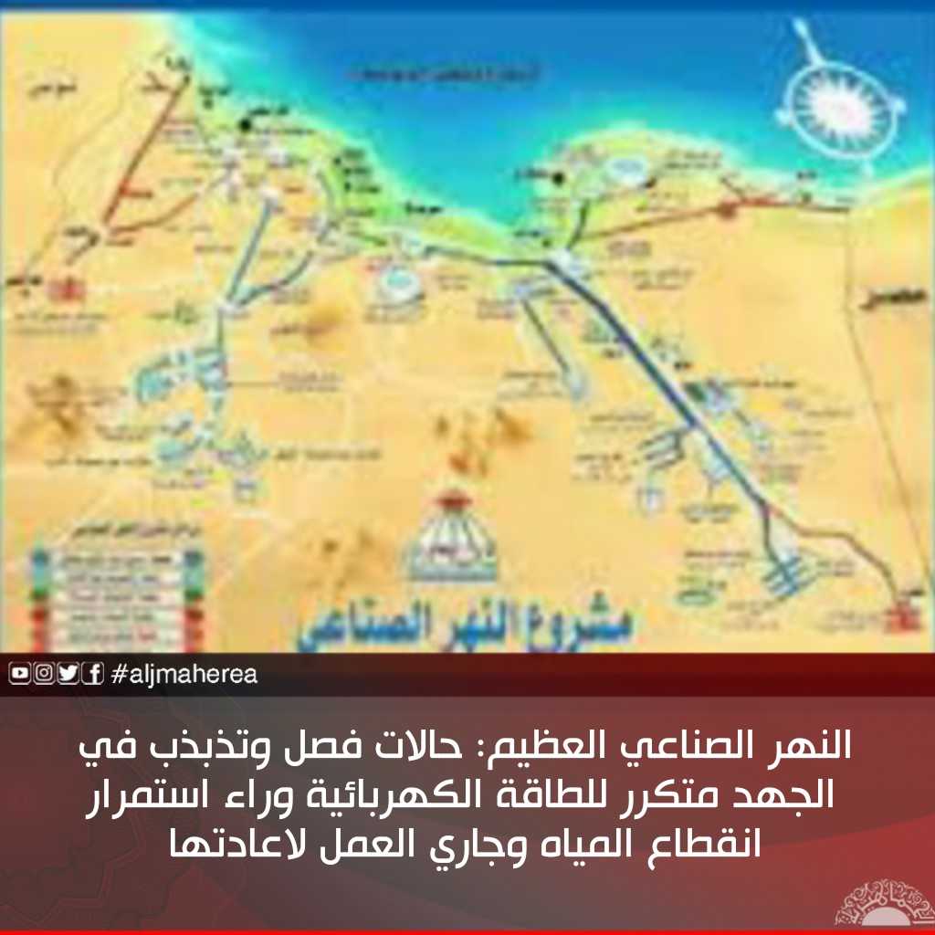النهر الصناعي العظيم: حالات فصل وتذبذب في الجهد متكرر للطاقة الكهربائية وراء استمرار انقطاع المياه وجاري العمل لاعادتها