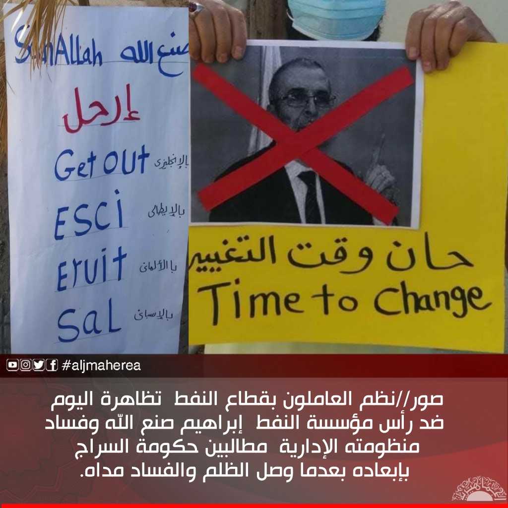 صور//نظم العاملون بقطاع النفط تظاهرة اليوم ضد رأس مؤسسة النفط إبراهيم صنع الله وفساد منظومته الإدارية مطالبين حكومة السراج