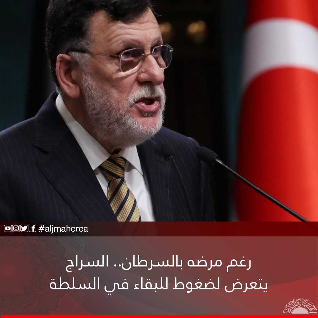 أكدت مصادر مطلعة أن رئيس المجلس الرئاسي غير الشرعي فايز السراج، يتعرض لضغوط داخلية وخارجية للبقاء في السطة على الرغم من إصابته بمرض السرطان