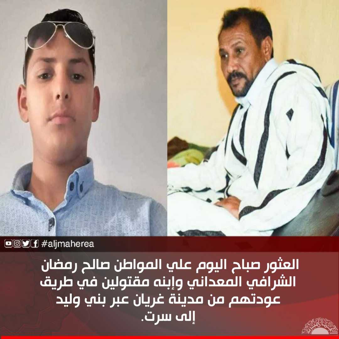الرئيسية/محلي/العثور صباح اليوم علي المواطن صالح رمضان الشرافي المعداني وإبنه مقتولين في طريق عودتهم من مدينة غريان عبر بني وليد إلى سرت. محلي العثور صباح اليوم علي المواطن صالح رمضان الشرافي المعداني وإبنه مقتولين في طريق عودتهم من مدينة غريان عبر بني وليد إلى سرت. 4 أكتوبر، 2020 الوسوم#قناة_الجماهيرية 4 أكتوبر، 2020 فيسبوك تويتر بينتيريست واتساب تيلقرام ڤايبر مشاركة عبر البريد طباعة
