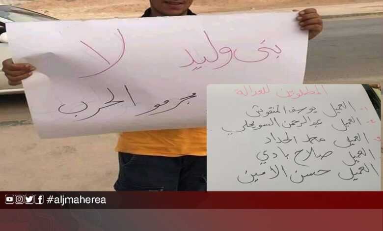 بعد جرائمه في بني وليد.. متظاهرون في بلدية الرصيفة يرفضون زيارة مجرم الحرب محمد الحداد