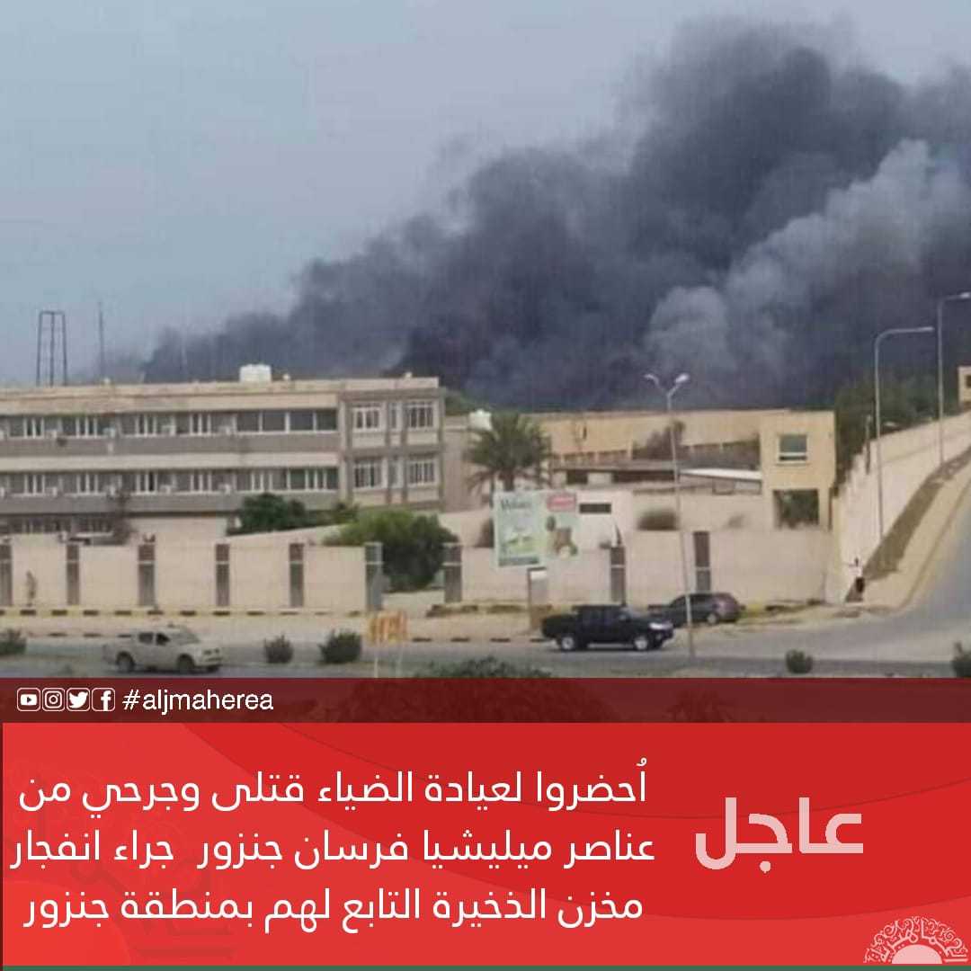 اُحضروا لعيادة الضياء قتلى وجرحي من عناصر ميليشيا فرسان جنزور جراء انفجار مخزن الذخيرة التابع لهم بمنطقة جنزور