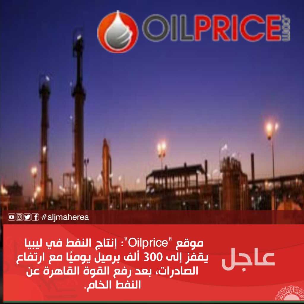 عاجل // موقع “Oilprice”: إنتاج النفط في ليبيا يقفز إلى 300 ألف برميل يوميًا مع ارتفاع الصادرات، بعد رفع القوة القاهرة عن النفط الخام