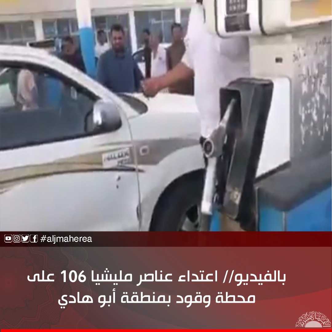 بالفيديو// اعتداء عناصر مليشيا 106 على محطة وقود بمنطقة أبو هادي