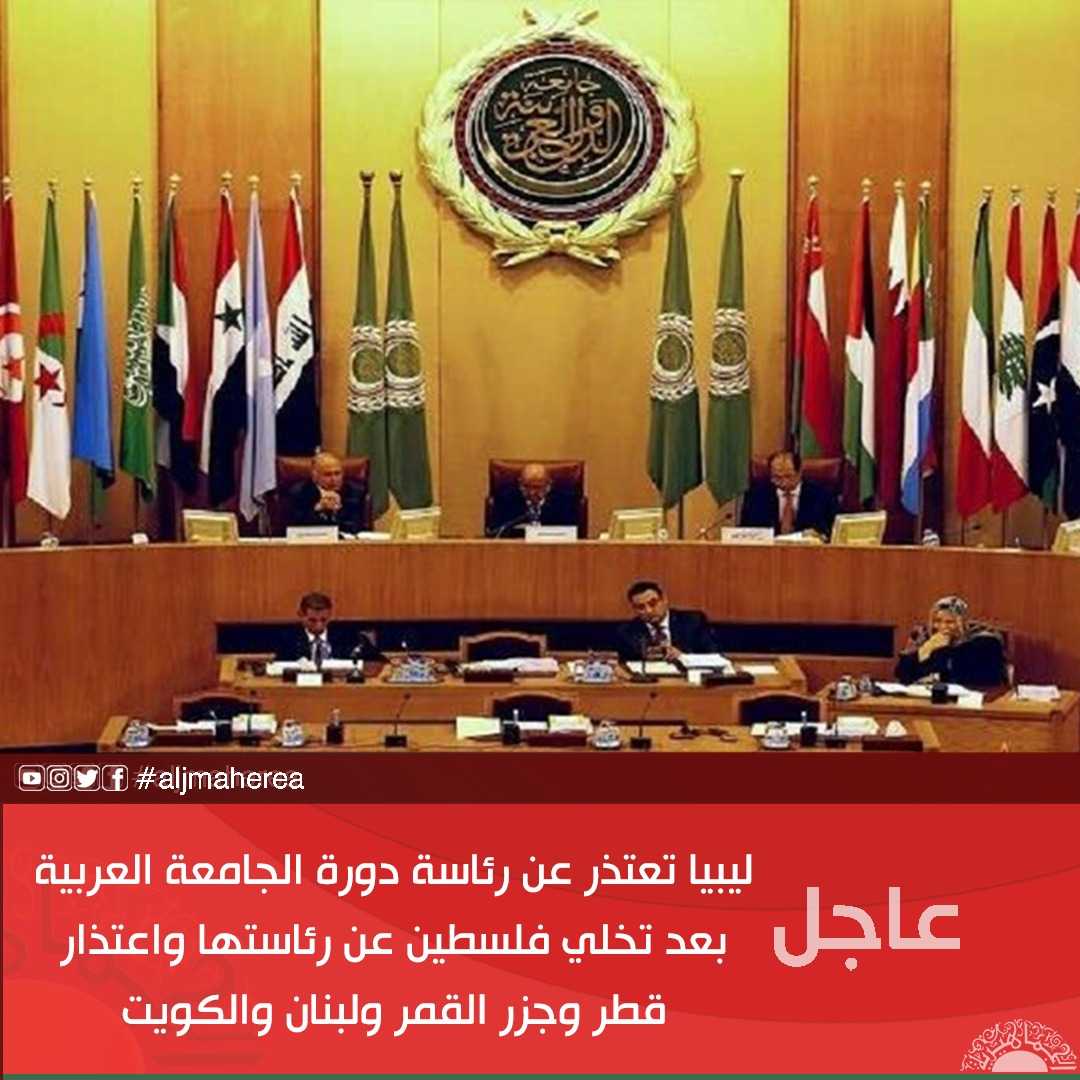 عاجل// ليبيا تعتذر عن رئاسة دورة الجامعة العربية بعد تخلي فلسطين عن رئاستها واعتذار قطر وجزر القمر ولبنان والكويت