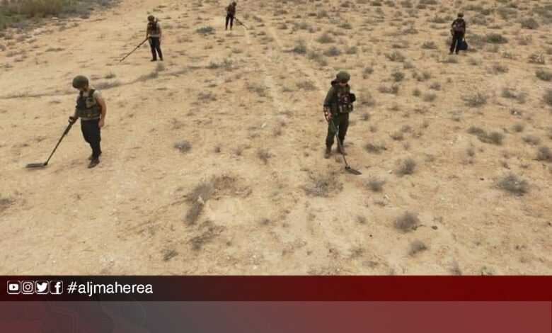 صور متداولة لـ “جنود أتراك” يقومون بمسح عن الألغام بقاعدة “عقبة بن نافع” الوطية
