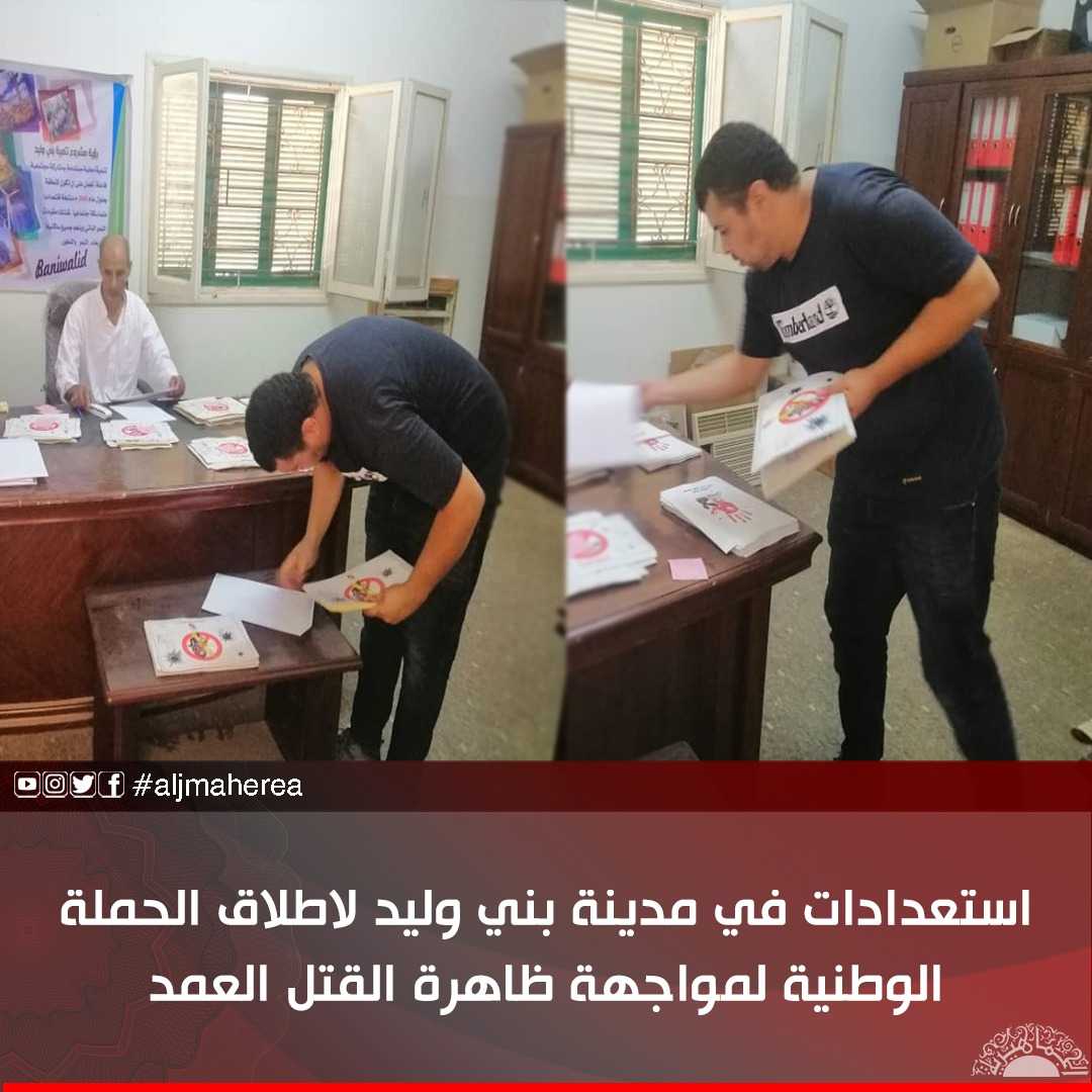 تجري الاستعدادات في مدينة بني وليد على قدم وساق لاطلاق حملة وطنية لمواجهة ظاهرة القتل العمد .
