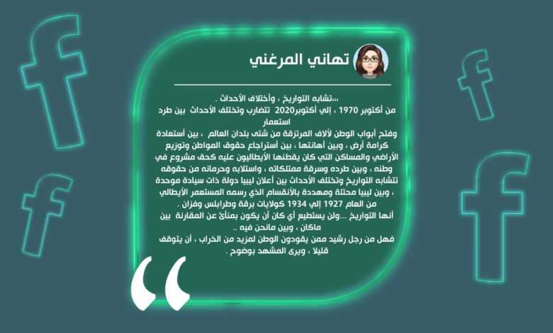 تتشابه التواريخ وتختلف الأحداث بين أعلان ليبيا دولة ذات سيادة موحدة ، وبين ليبيا محتلة ومهددة بالأنقسام الذي رسمه المستعمر الأيطالي من العام 1927 إلي 1934 كولايات برقة وطرابلس وفزان .