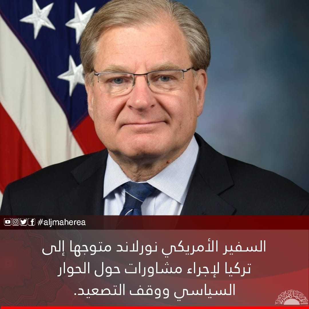 السفير الأمريكي نورلاند متوجها إلى تركيا لإجراء مشاورات حول الحوار السياسي ووقف التصعيد.