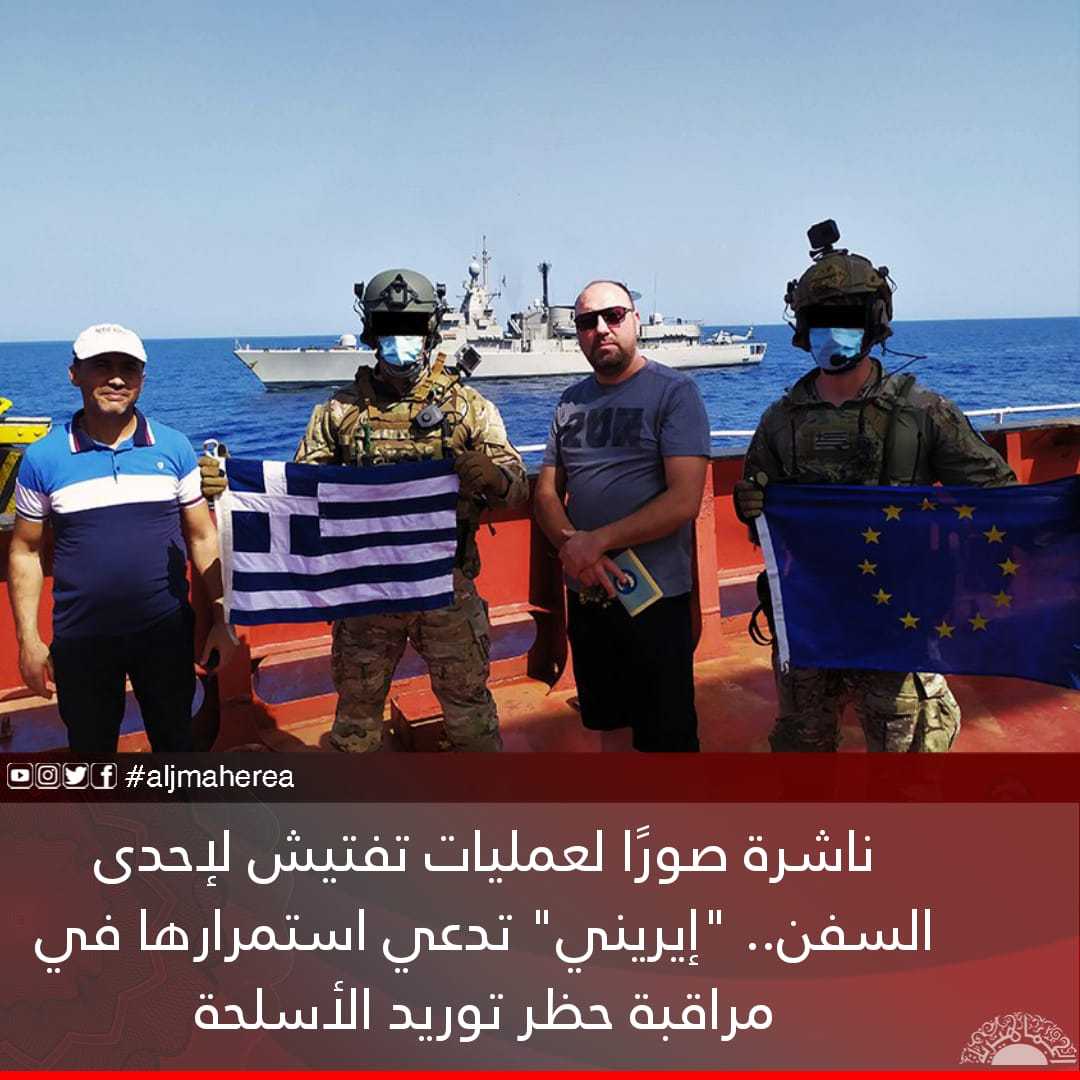 تدعي العملية البحرية الأوروبية “إيريني”، استمرارها في مراقبة حظر توريد الأسلحة إلى ليبيا، حيث نشرت صورًا لعمليات تفتيش أجراها طاقم فرقاطة يونانية لإحدى السفن.