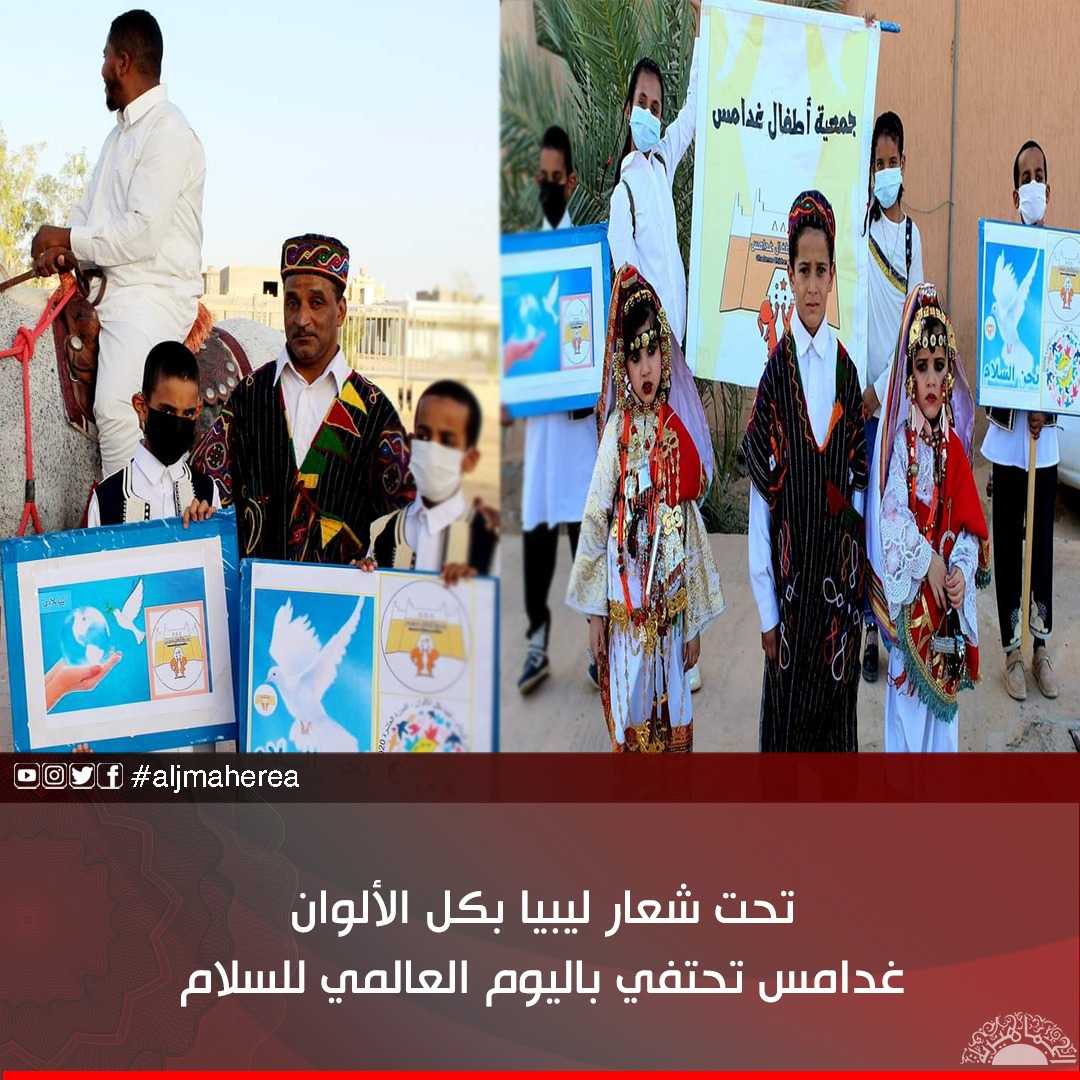 أحيا المركز الثقافي غدامس وبمشاركة جمعيات ومؤسسات مهتمة بالطفولة من أكثر من أربعين مدينة في ليبيا الخميس الماضي فعاليات اليوم العالمي للسلام، في دورته العاشرة، تحت شعار ليبيا بكل الألوان.