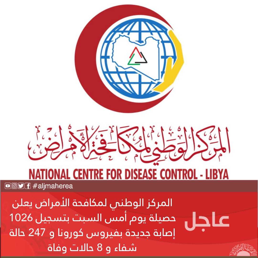 المركز الوطني لمكافحة الأمراض يعلن حصيلة يوم أمس السبت بتسجيل 1026 إصابة جديدة بفيروس كورونا و 247 حالة شفاء و 8 حالات وفاة.