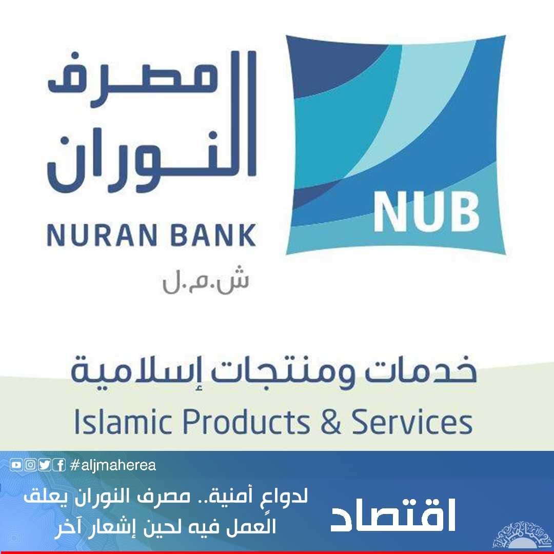 علق مصرف النوران اليوم الاثنين، العمل لدواعي أمنية إلى حين إشعار آخر.