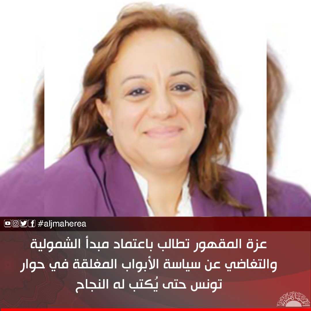 طالبت المحامية، عزة كامل المقهور، بالعمل على اعتماد مبدأ الشمولية، وفتح الباب لاستقبال الآراء والأفكار وتقديمها لملتقى الحوار السياسي الليبي، المرتقب في تونس، وهو ما يعني أن الحوار لن ملكا خالصا لأعضاء ملتقى الحوار السياسي، ولن يعتمد على سياسة الأبواب المغلقة التي عهدناها في حوار الصخيرات.
