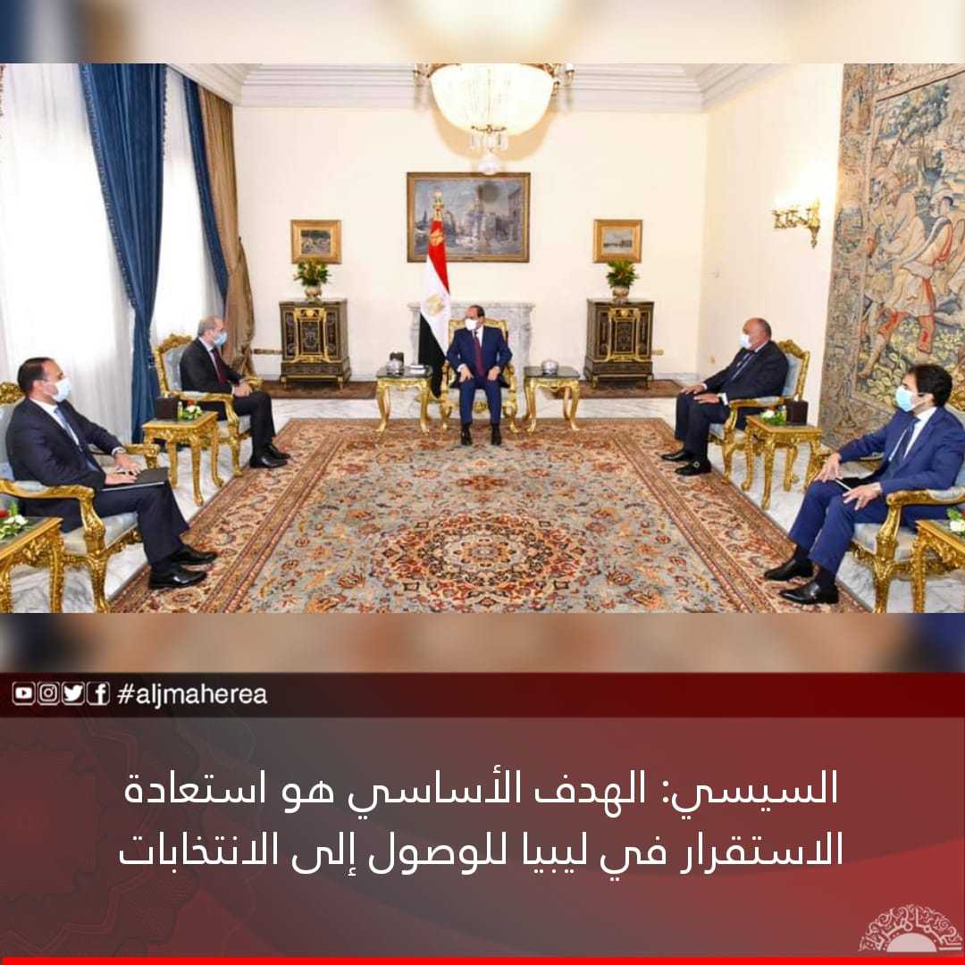 وأضاف السيسي أن استعادة الاستقرار في ليبيا يتحقق من خلال المسار السياسي ونتائج مخرجات مؤتمر برلين وإعلان القاهرة، وصولاً إلى الاستحقاق الانتخابي.