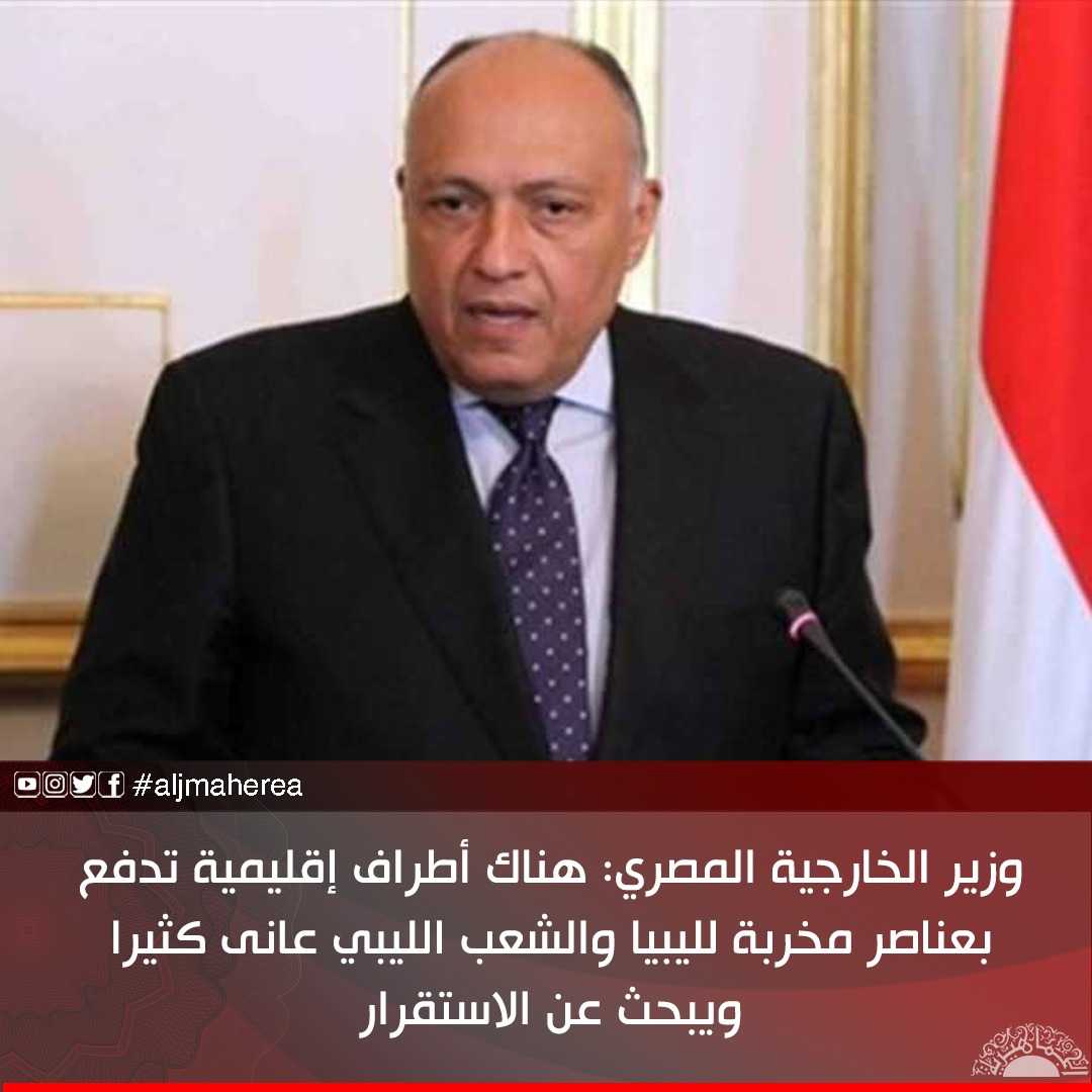 وزير الخارجية المصري: هناك أطراف إقليمية تدفع بعناصر مخربة لليبيا والشعب الليبي عانى كثيرا ويبحث عن الاستقرار