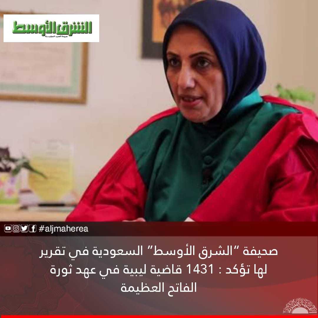 صحيفة “الشرق الأوسط” السعودية في تقرير لها تؤكد : 1431 قاضية ليبية في عهد ثورة الفاتح العظيمة