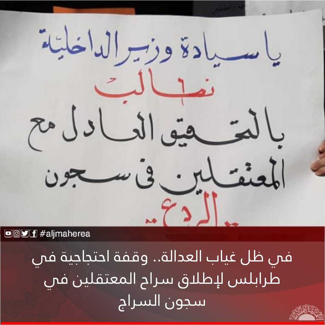 أكدت مصادر صحفية، اليوم الخميس، خروج أهالي طرابلس في وقفة احتجاجية للمطالبة بإطلاق سراح أبنائهم المعتقلين في السجون التابعة للسراج.
