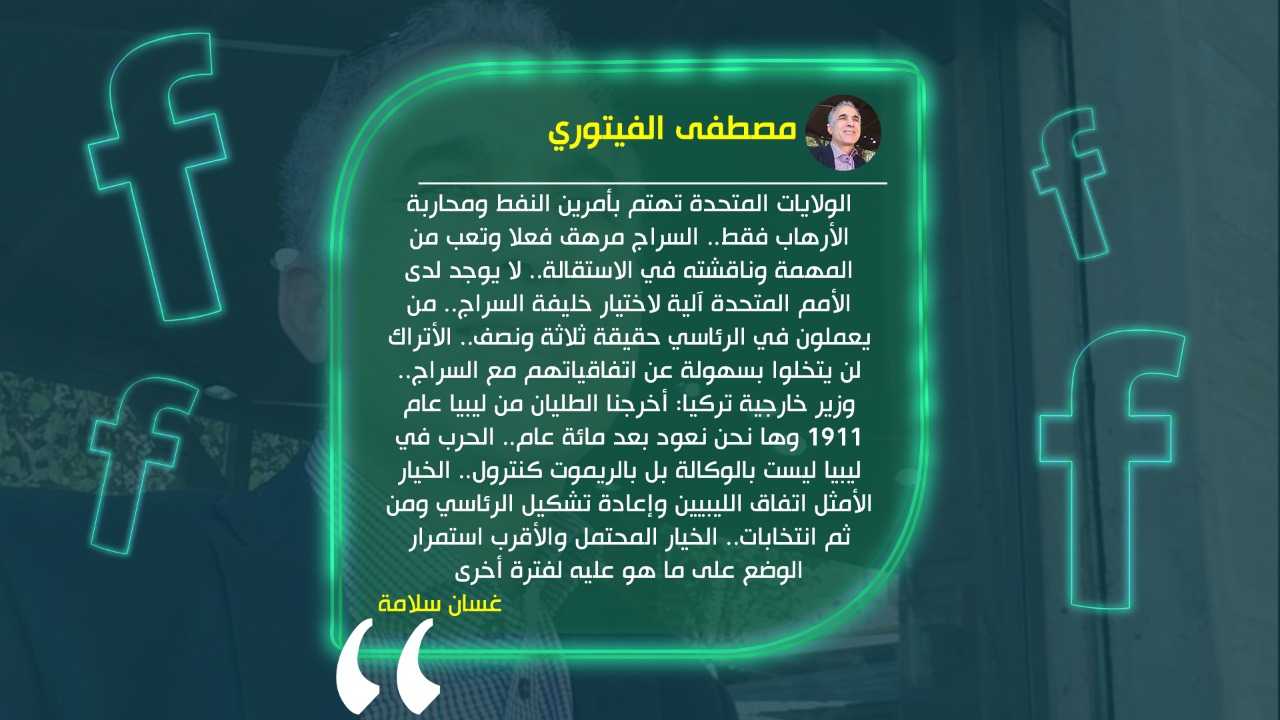 نقل الكاتب والمحلل السياسي مصطفى الفيتوري، عن المبعوث الأممي السابق غسان سلامة، تصريحه بشأن العديد من القضايا الهامة.