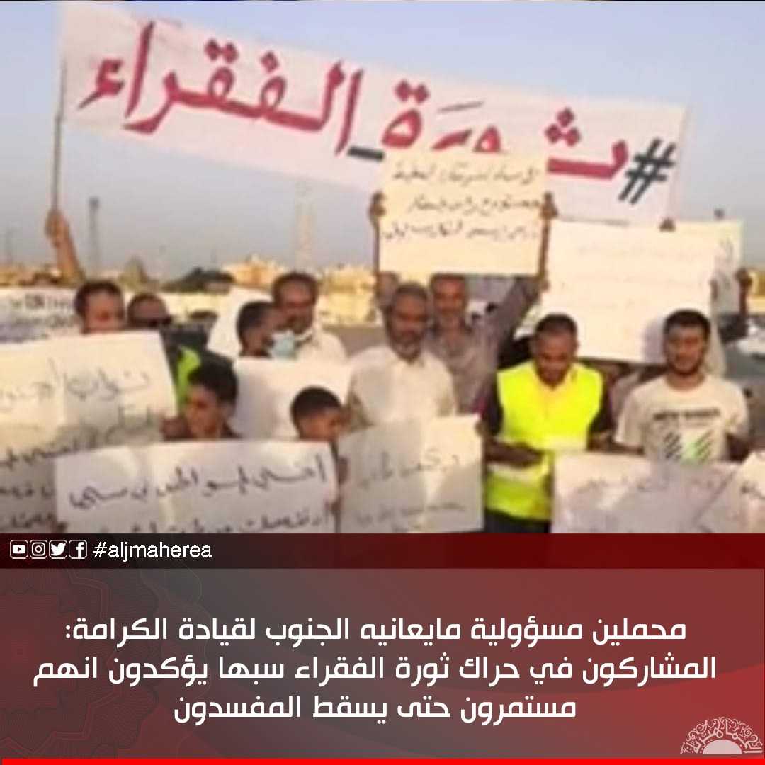 محملين مسؤولية مايعانيه الجنوب لقيادة الكرامة: المشاركون في حراك ثورة الفقراء سبها يؤكدون انهم مستمرون حتى يسقط المفسدون