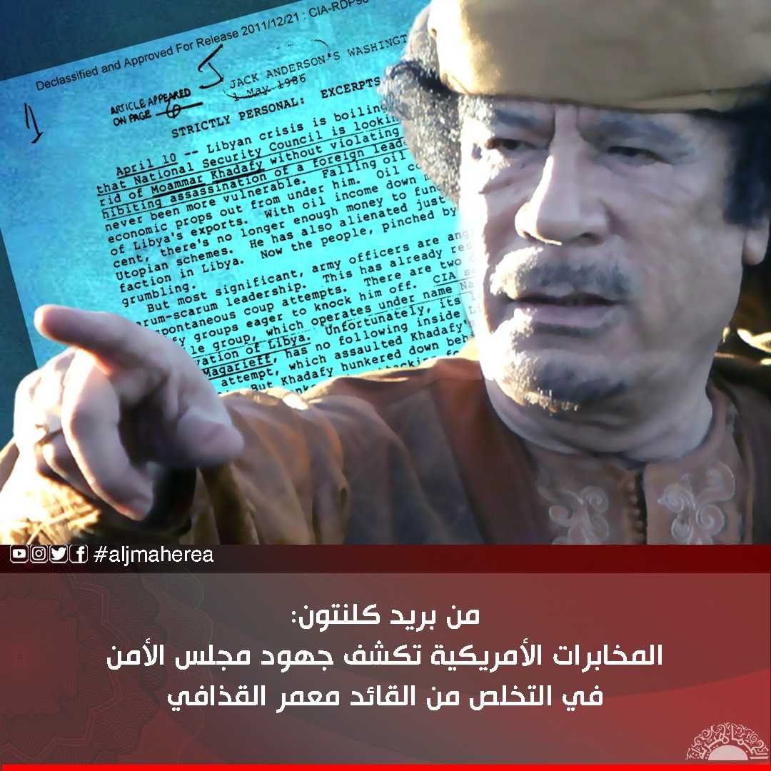 من بريد كلنتون: المخابرات الأمريكية تكشف جهود مجلس الأمن في التخلص من القائد معمر القذافي