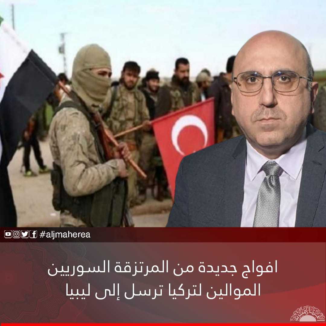 كشف مدير المرصد السوري لحقوق الإنسان رامي عبدالرحمن في مداخلة هاتفية على قناة «العربية»، عن افواج جديدة من المرتزقة السوريين من الفصائل الموالية لتركيا ترسل إلى ليبيا .