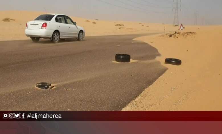 الرمال المتحركة على جانبي طريق سبها براك تهدد حياة سالكيه