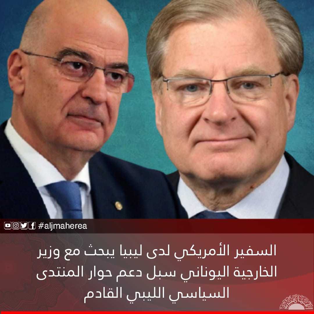 السفير الأمريكي لدى ليبيا يبحث مع وزير الخارجية اليوناني سبل دعم حوار المنتدى السياسي الليبي القادم