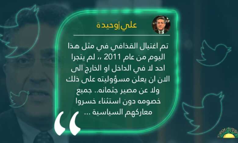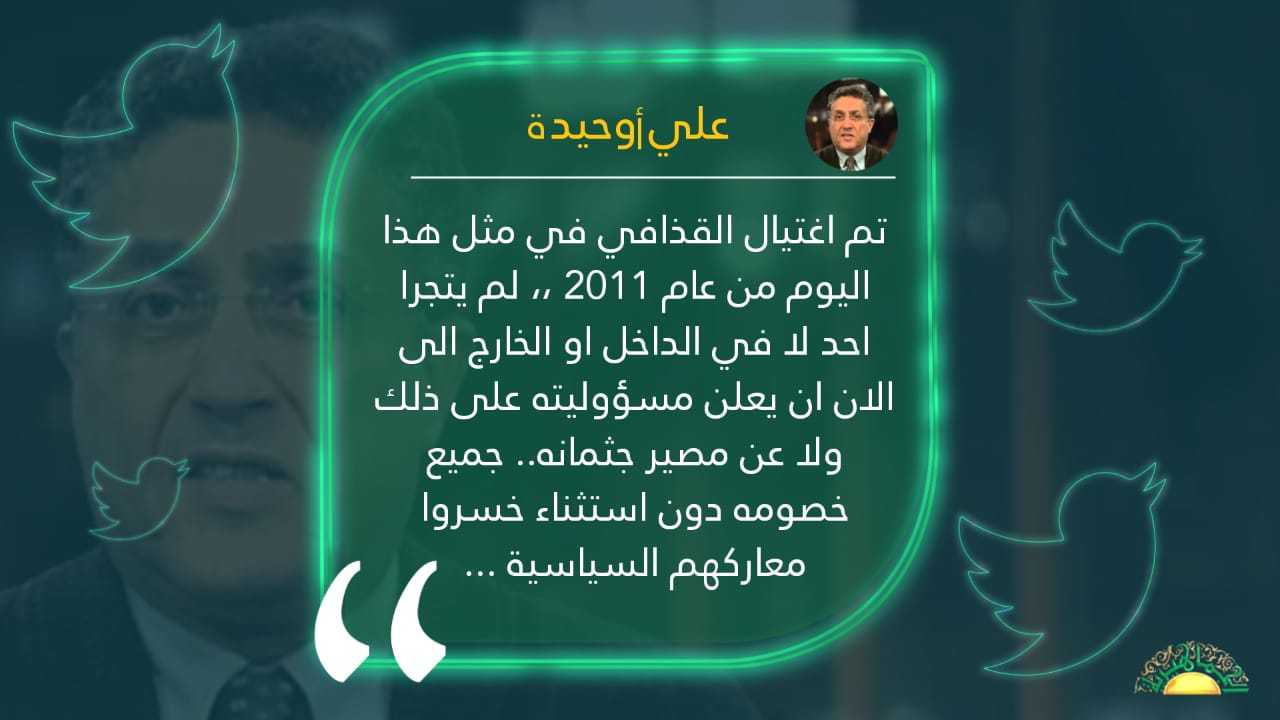 تم اغتيال القذافي في مثل هذا اليوم من عام 2011 ،، لم يتجرا احد لا في الداخل او الخارج الى الان ان يعلن مسؤوليته على ذلك