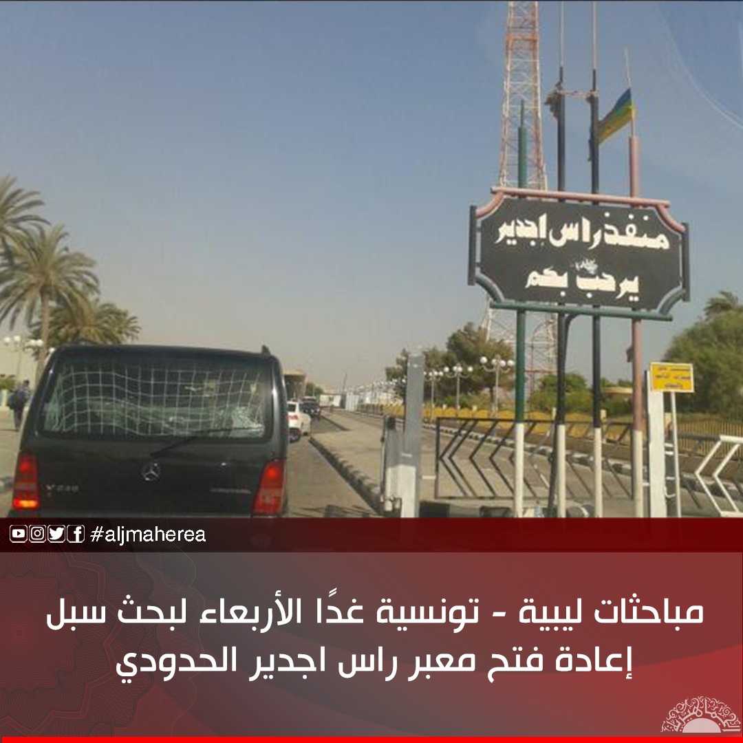 وأكد رئيس المجلس الأعلى لرجال الأعمال التونسيين والليبيين عبد الحفيظ السكروفي، أن الوفد الليبي ويتقدمه وكيلا وزراتي الخارجية والصحة سيعقد غدا الأربعاء، جلسة عمل مع نظيره من الحكومة التونسية، لتدارس سبل وآليات إعادة فتح معبر رأس اجدير الحدودي بين البلدين، ووضع بروتوكول صحي مشترك يمكن من إعادة فتح المعبر، وفق الخطة الوطنية التونسية للتصدي لفيروس كورونا.