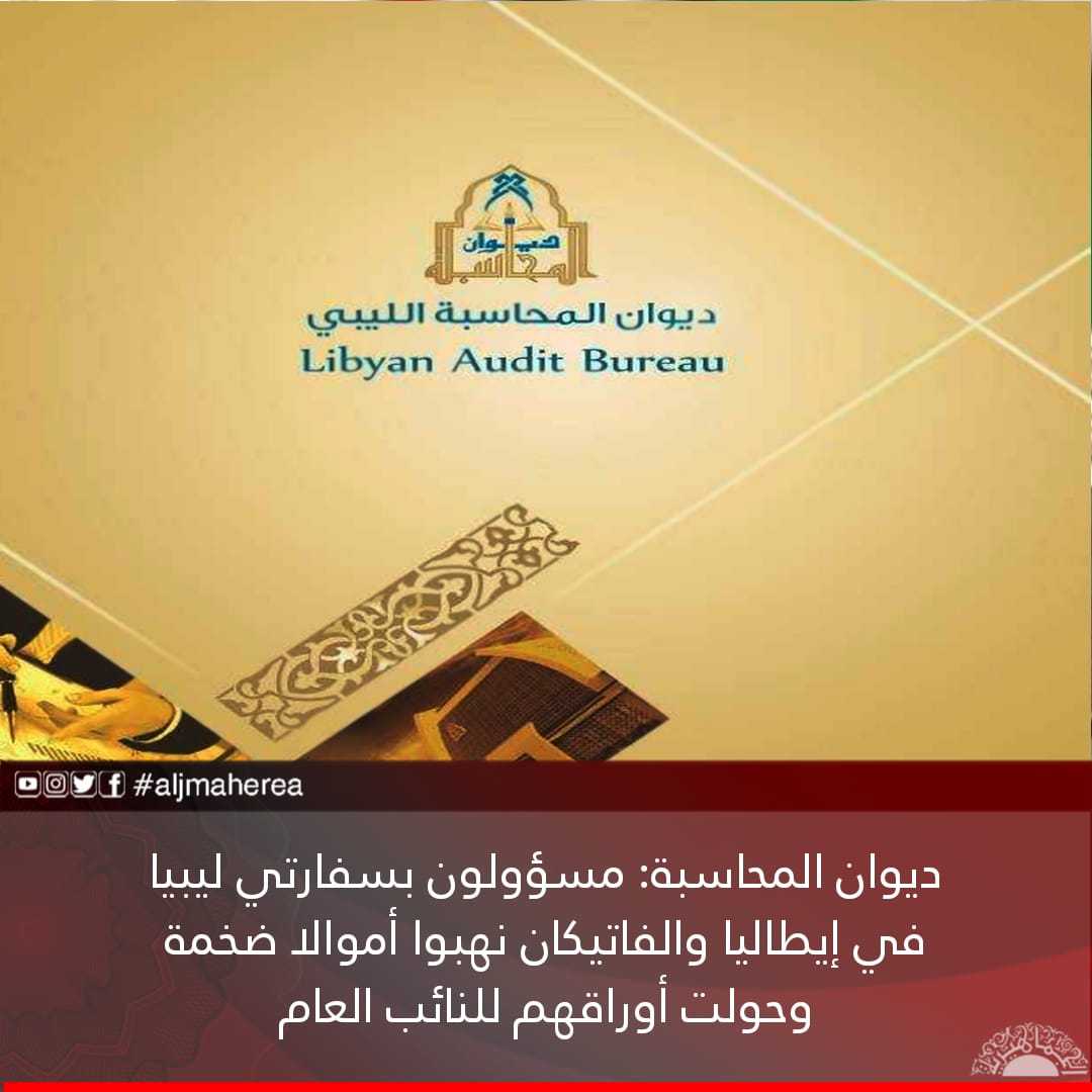 وخاطب ديوان المحاسبة، حكومة السراج غير الشرعية، لتطلب من الحكومة الإيطالية، استرجاع هذه الأموال المنهوبة، وفقا لما جاء في اتفاقية الأمم المتحدة لمكافحة الفساد.