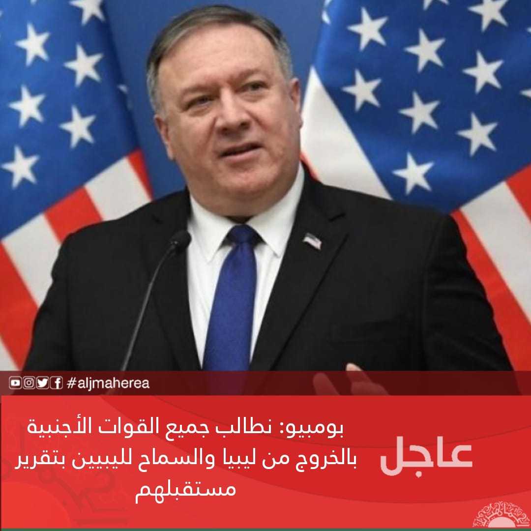 عاجل// بومبيو: نطالب جميع القوات الأجنبية بالخروج من ليبيا والسماح لليبيين بتقرير مستقبلهم 5 سنوات ago عاجل// بومبيو: نطالب جميع القوات الأجنبية بالخروج من ليبيا والسماح لليبيين بتقرير مستقبلهم مقالات ذات صلة مندوب روسيا لدى الأمم المتحدة: ندين بشدة مقتل سيف الإسلام ونطالب بتحقيق نزيه خريطة المخاطر: ليبيا باللون الأشد خطورة في نظام تقييم المخاطر الأمريكي بين طرابلس والجزائر وكييف.. شبكة لتهريب الأسلحة تدعم الدبيبة
