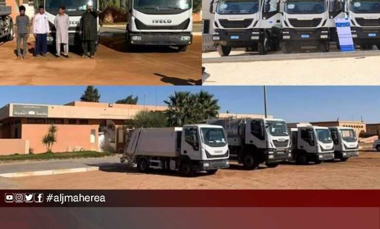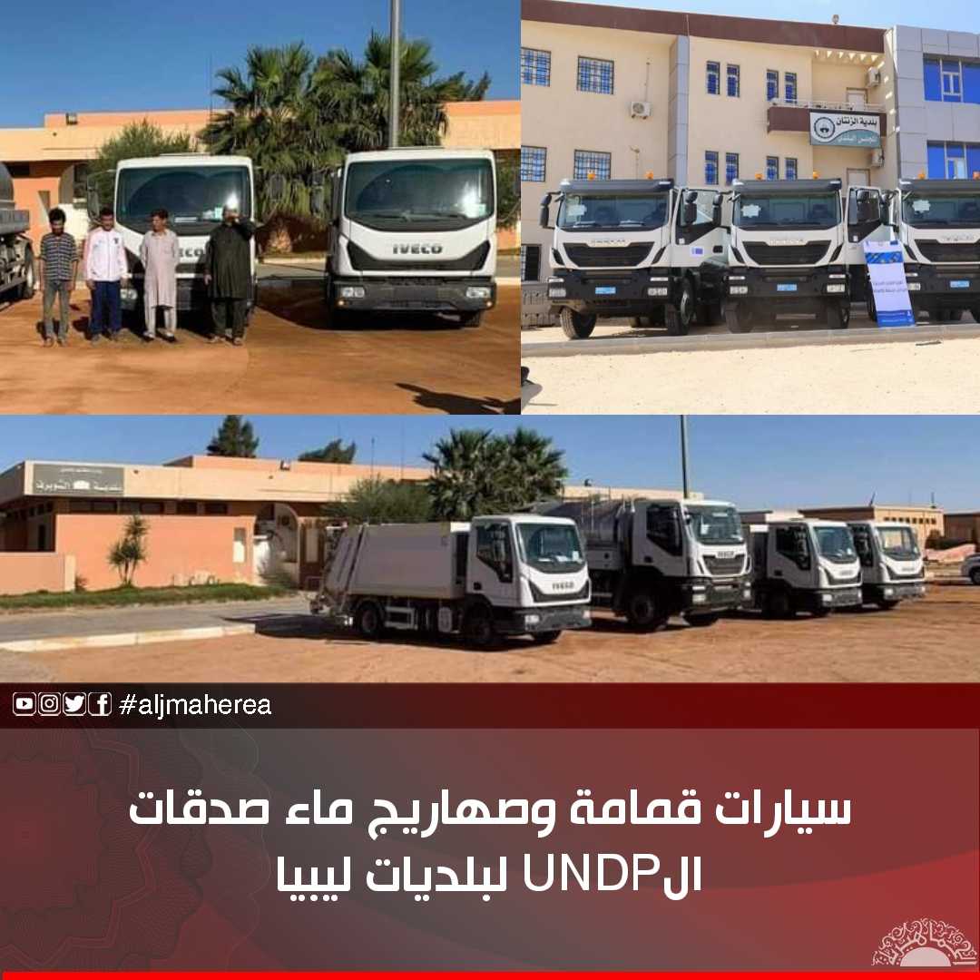 فقد تم توثيق تسليم ثلاث مركبات لبلدية الشويرف وثلاث أخريات لبلدية الزنتان .