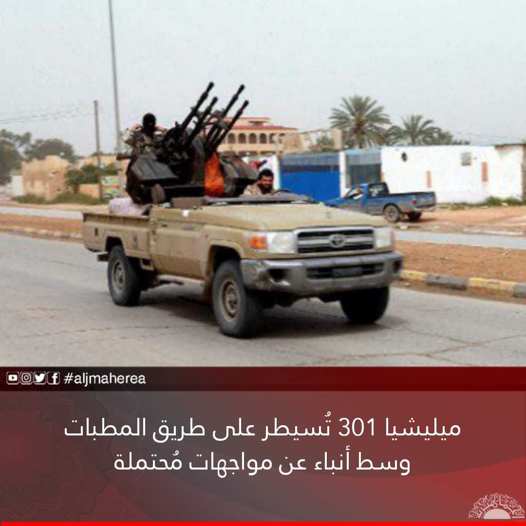 نقلت تقارير اليوم الخميس، أن ميليشيا 301 بسطت سيطرتها على طريق كتيبة حمزة وشارع المطبات خلف خزانات النفط.