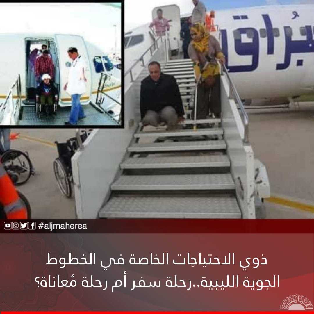 وأثار ناشطون عبر مواقع التواصل الاجتماعي مُعاناة المعوقين في المطارات الليبية، وهو ما سلط الضوء على الإهمال الذي بات واقعًا في المطارات الليبية.