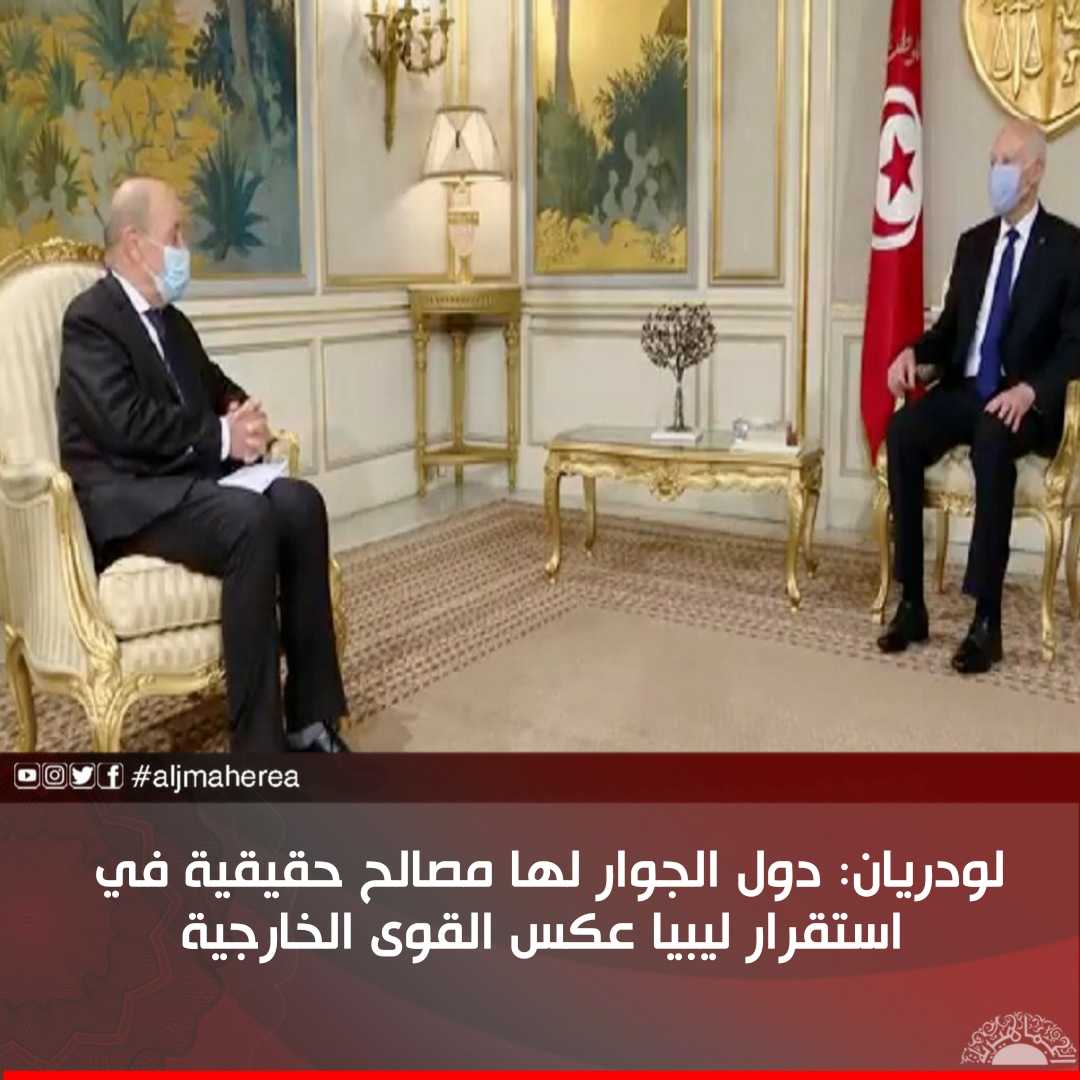 وأوضح لودريان في تصريحات للصحافيين خلال زيارة تونس، الخميس، عقب لقائه الرئيس قيس سعيّد، ورئيس الحكومة هشام المشيشي، أنّه تطرق إلى الوضع في ليبيا قبيل أيام من انعقاد حوار ليبي- ليبي في تونس بإشراف الأمم المتحدة.