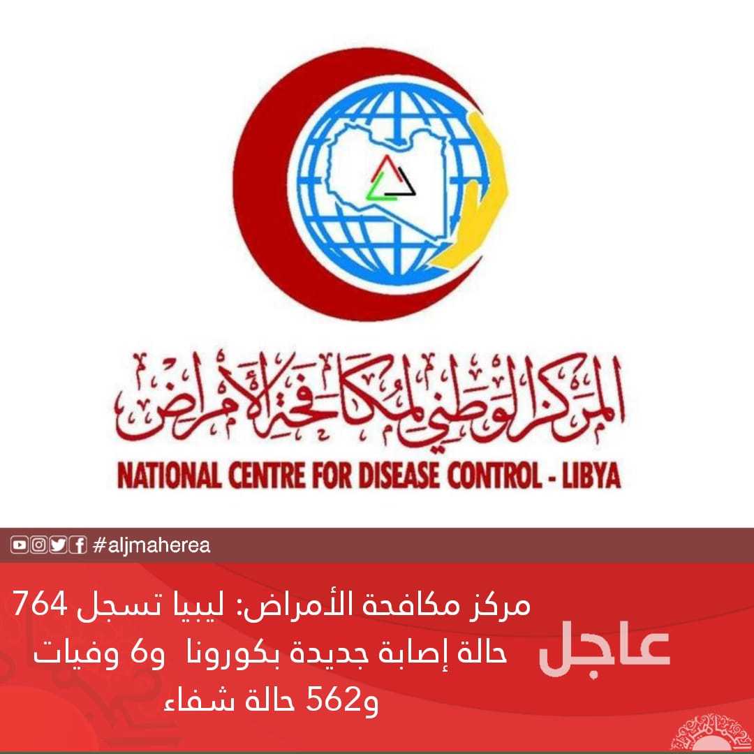 عاجل// مركز مكافحة الأمراض: ليبيا تسجل 764 حالة إصابة جديدة بكورونا و6 وفيات و562 حالة شفاء