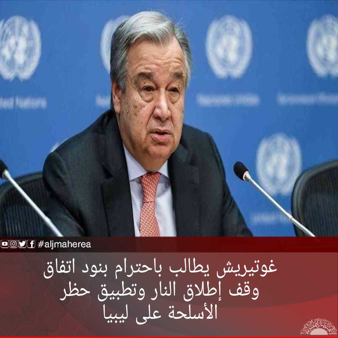 غوتيريش يطالب باحترام بنود اتفاق وقف إطلاق النار وتطبيق حظر الأسلحة على ليبيا