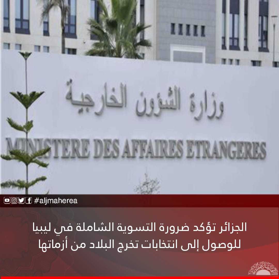جاء ذلك في بيان لوزارة الشؤون الخارجية الجزائرية اليوم السبت، أكدت خلاله أنها لن تدخر أي جهد للوصول إلى حل سياسي سلمي يضمن وحدة الشعب الليبي وسيادته والعيش في كنف الأمن والاستقرار بعيدا عن أي تدخل أجنبي.