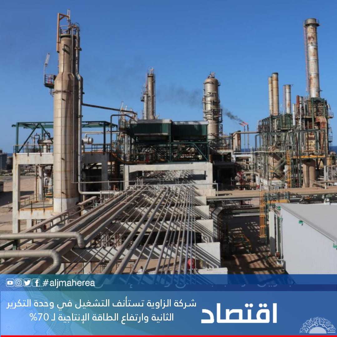 أعلنت شركة الزاوية لتكرير النفط، اليوم السبت، عن استئناف التشغيل بوحدة التكرير الثانية التابعة للشركة.